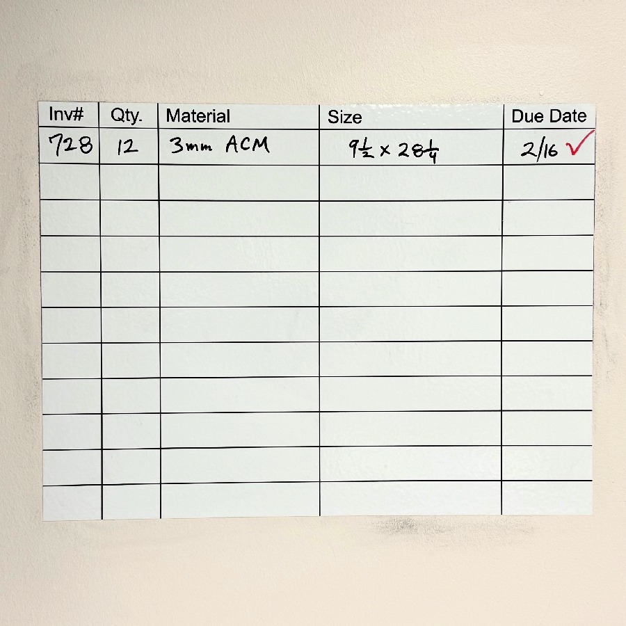 Dry Erase Decals turn any smooth surface into a reusable writing board. Printed with your custom design and finished with a dry‑erase laminate, these decals are ideal for schedules, menus, production boards, and collaborative spaces.