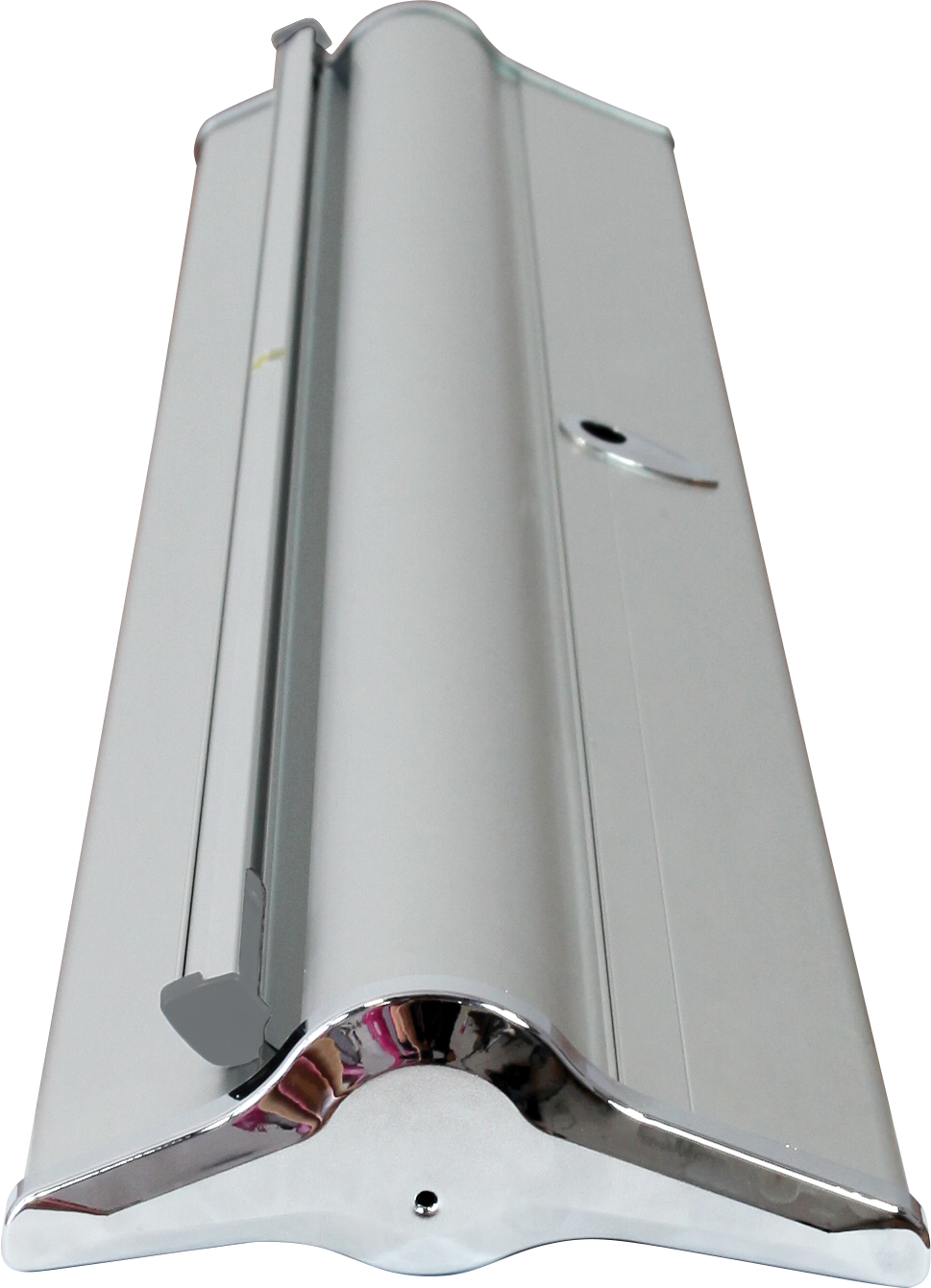 Our deluxe retractable banner stands have an adjustable height from 60” – 83”, a streamlined sturdier silver aluminum base with chrome end caps (without swivel feet), and foam padding in the carry bag.