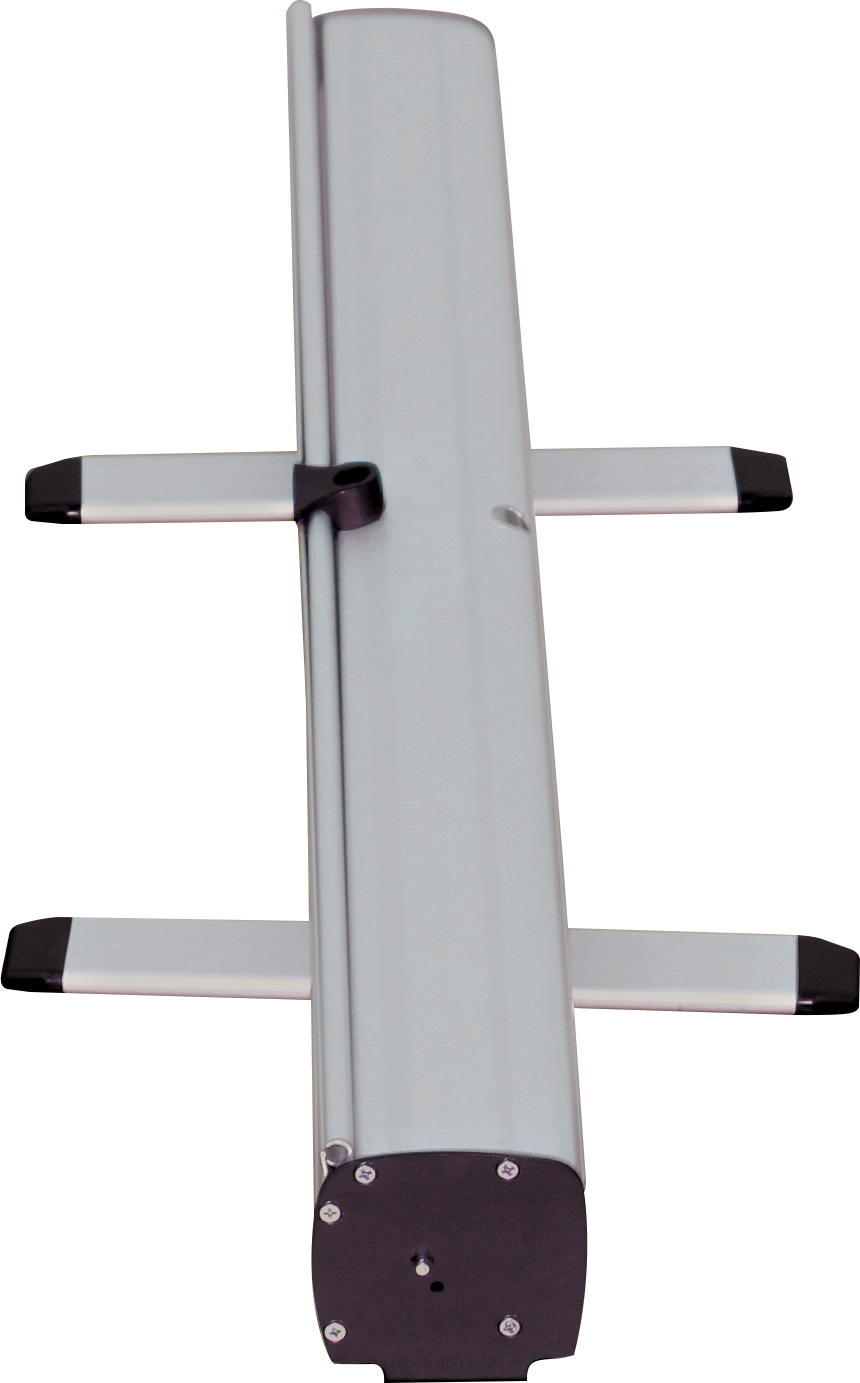 Our standard retractable banner stands have a fixed height of 79”, a lightweight aluminum base with a silver anodized finish, black end caps, swivel feet, and a carry bag.